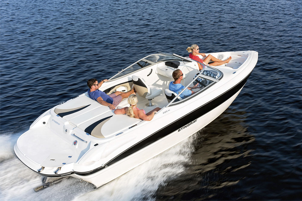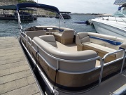 - Port & starboard bow lounges w/NEW Stow More™ seat-back compartments & underseat storage